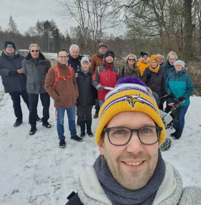 Die motivierte Truppe startete bei bestem Winterwetter in 3 Teams zu einer Tour rund um Lichtenhagen. Die Kugeln (in 3 zufällig ausgewählten Farben) trieben wir dabei vor uns her. Bei der etwa 3-stündigen Runde kam der Spaß, aber auch der Austausch über aktuelle Themen unter allen Mitläufern nicht zu kurz.